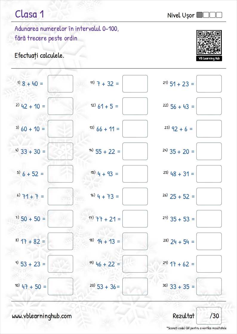 Clasa 1. Adunări în intervalul 0-100, fără trecere peste ordin. bvaleriu7 octombrie 2022Clasa 1 Navigare în articole PrecedentUrmător Download pdf Partajează asta: Partajează pe X(Se deschide într-o fereastră nouă) X Partajează pe Facebook(Se deschide într-o fereastră nouă) Facebook Apreciază Încarc... Similare