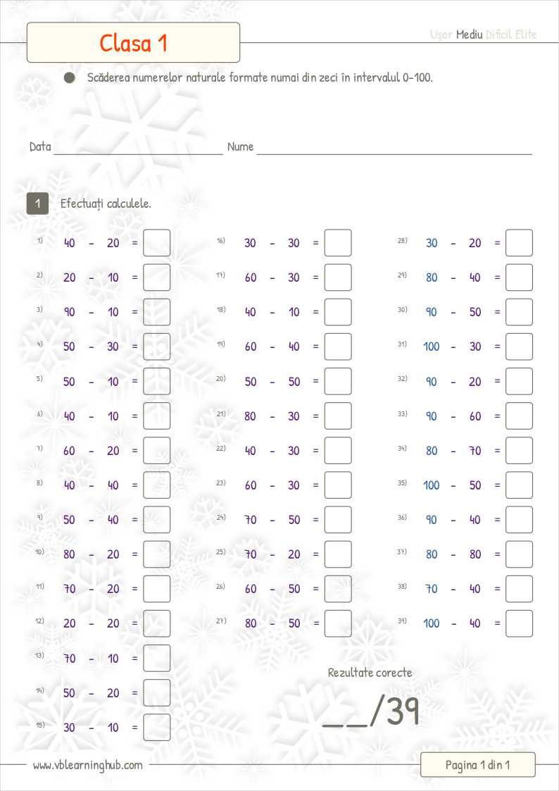 Clasa 1. Scăderea numerelor formate numai din zeci în intervalul 0-100. bvaleriu10 ianuarie 2023Clasa 1, Math Worksheets Navigare în articole PrecedentUrmător Descarcă fișă Răspunsuri / Answers Download worksheet Partajează asta: Partajează pe X(Se deschide într-o fereastră nouă) X Partajează pe Facebook(Se deschide într-o fereastră nouă) Facebook Apreciază Încarc... Similare