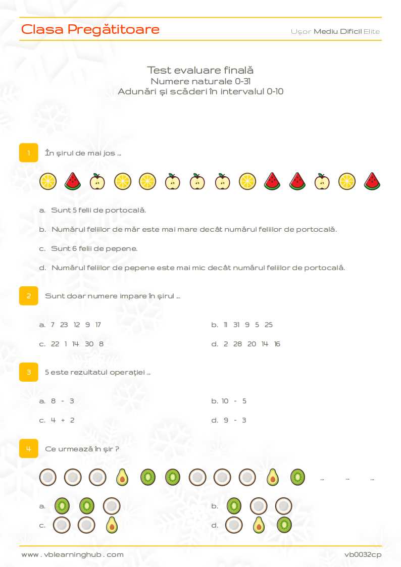 Clasa Pregătitoare. Test evaluare finală. ( 3 pagini ) bvaleriu7 iulie 20237 iulie 2023Clasa Pregătitoare Navigare în articole PrecedentUrmător Descărcare test Descărcare rezolvare Partajează asta: Partajează pe X(Se deschide într-o fereastră nouă) X Partajează pe Facebook(Se deschide într-o fereastră nouă) Facebook Apreciază Încarc... Similare