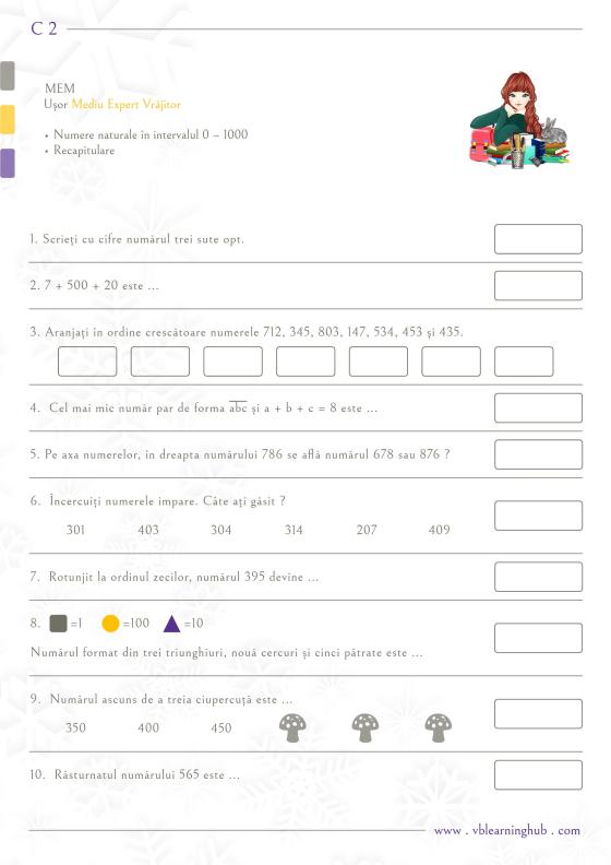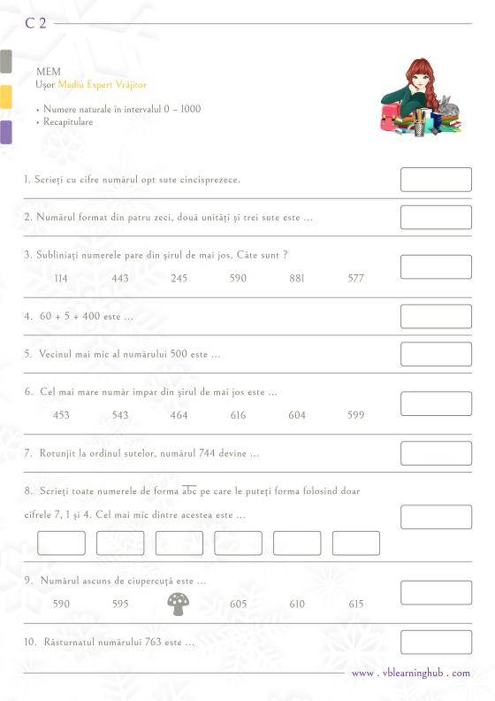 Clasa 2. Numere naturale 0-1000. Recapitulare