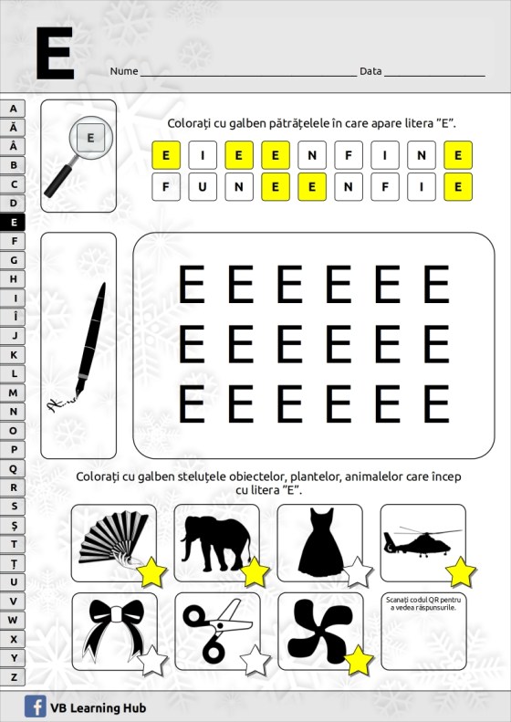 Clasa Pregătitoare. Litera ”E” de tipar.