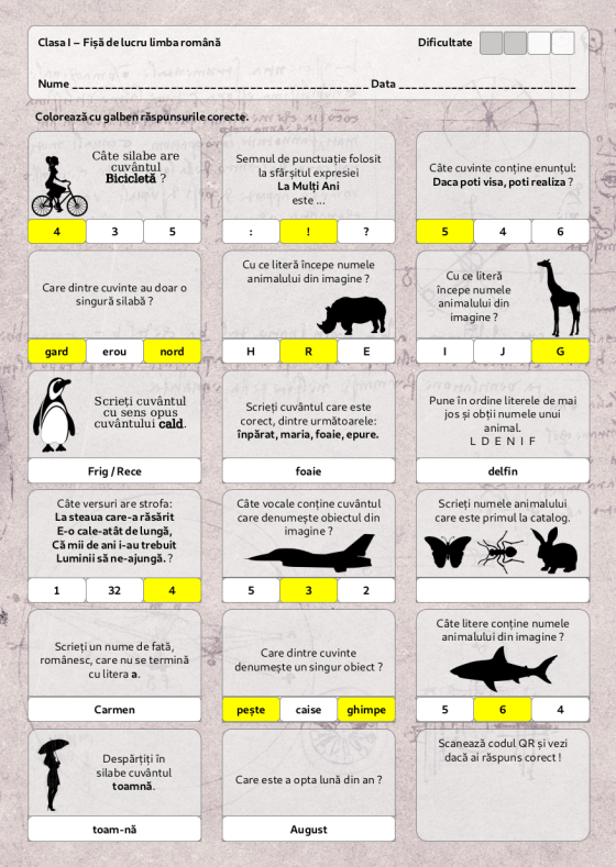 Fișe de lucru pentru preșcolari și clasele 0-4
