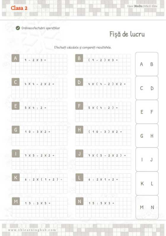 Clasa 2. Fișă de lucru. Ordinea efectuării operațiilor.