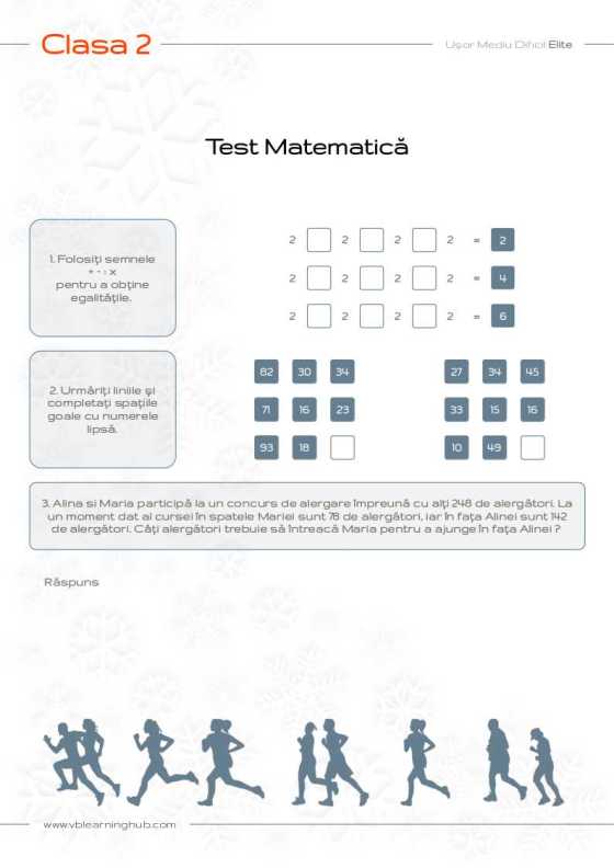 Clasa 2. Test matematica. Recapitulare. RO/EN