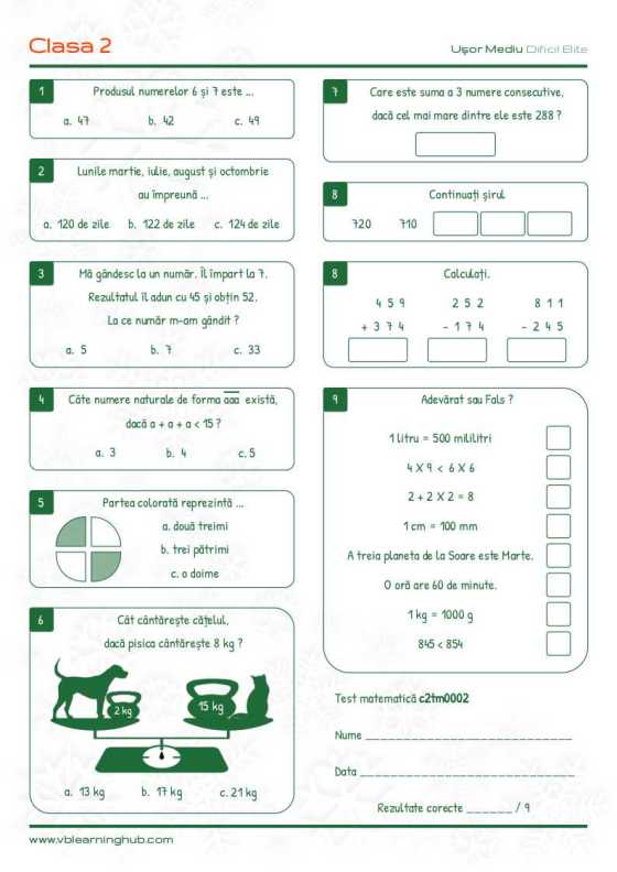 Clasa 2. Test matematică. RO / EN. c2tm0001