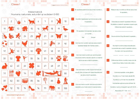 Clasa 1. Recapitulare. Numere naturale, adunări și scăderi 0-100.