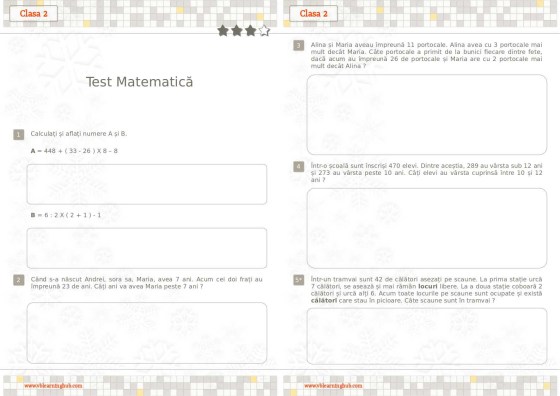 Clasa 2. Test matematică. Dificil.