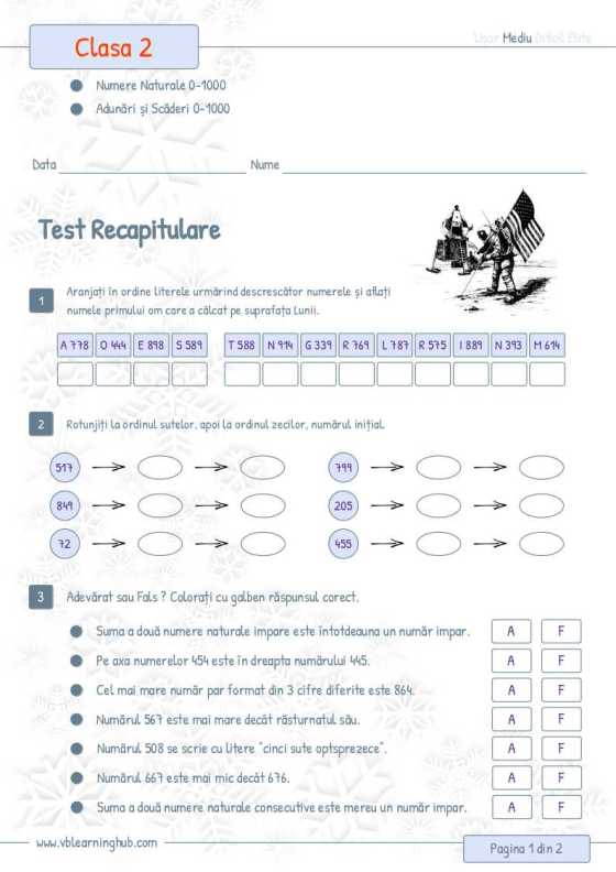 Clasa 2. Test Recapitulare. Numere, adunări și scăderi 0-1000.