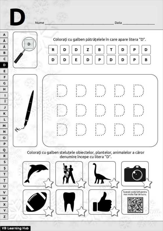 Clasa Pregătitoare. Litera ”D” de tipar.
