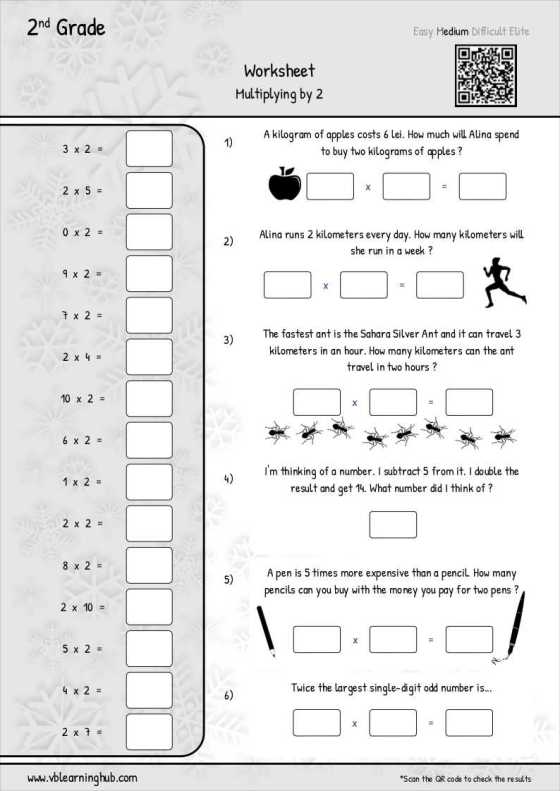 2nd Grade. Multiplying by 2 Worksheet.
