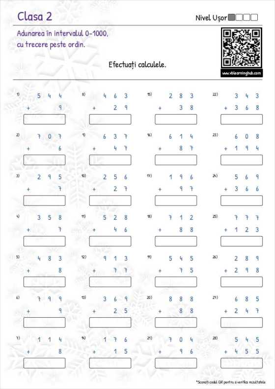 Clasa a II-a. Adunarea în intervalul 0-1000, cu trecere peste ordin.