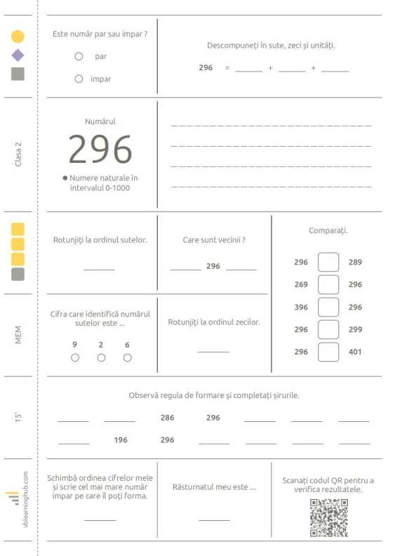 Clasa 2. Numere naturale 0-1000. Recapitulare. Numărul 296.
