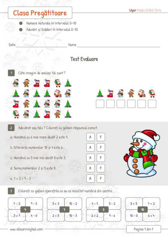 Clasa Pregătitoare. Test evaluare. Numere naturale 0-10. Adunări și Scăderi 0-10. facebook ro @vblearninghub facebook en @evblearninghub