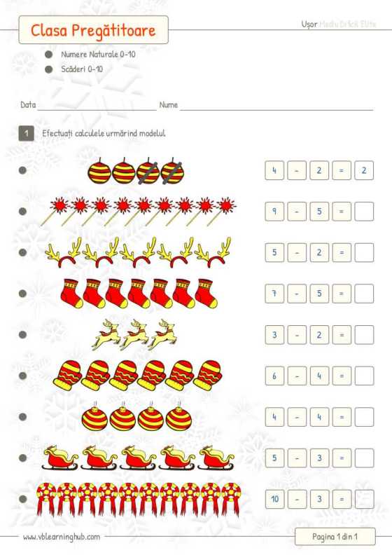 Clasa Pregătitoare. Scăderi în intervalul 0-10.
