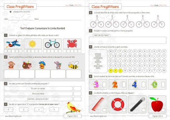 test evaluare clasa pregatiroare clr literele amunierc